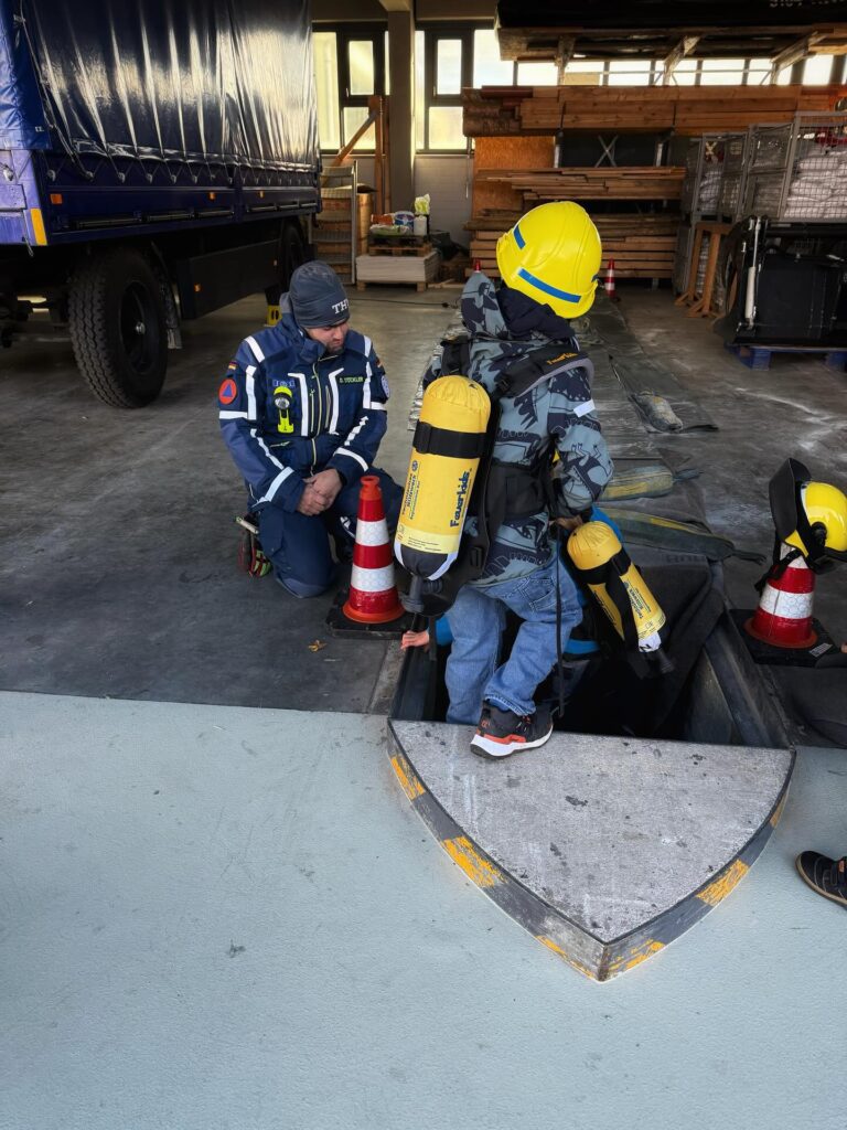 Die Teams durften einen Lichtmast aufbauen und in Betrieb nehmen, eine Saugleitung kuppeln, mit einem Strahlrohr Badeenten abschießen, ein kleines Schraubenmännchen zusammensetzen, sowie bei einem Quiz ihr Wissen zeigen. Besonders spannend war unter kindergerechtem „Atemschutz“ eine verrauchte Grube zu durchkriechen und dabei eine Puppe zu retten.