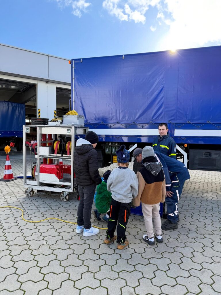 Hierzu bereitete das technische Hilfswerk zahlreiche Mitmachstationen für die teilnehmen Kinder vor, bei denen auch die Tätigkeiten der Organisation näher gebracht wurden. In gemischten Gruppen konnten unsere Kids mit der Minigruppe des THWs gemeinsam die Aufgaben lösen und dabei feststellen, dass auch die übergreifende Zusammenarbeit von unterschiedlichen Blaulichtorganisationen im Ernstfall wichtig ist.